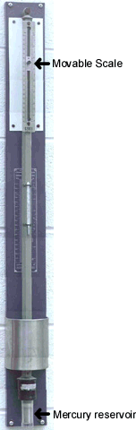 An increase in atmospheric pressure will cause the liquid in the tube to rise, while a decrease in atmospheric pressure will permit the liquid in the tube to fall. The atmospheric pressure can be determined by measuring the height of the mercury column, usually in units of millimeters mercury (mmHg).