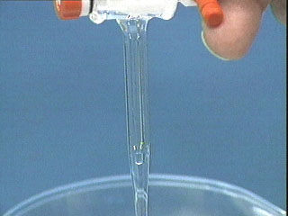 IMAGE. Close-up of the buret tip. Note the large air bubble that must be removed.