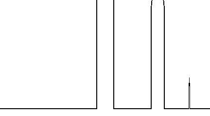 The peaks in the chromatogram are too large. Two new experiments could be performed on the same sample to attempt to reduce the peak size. First, reduce the injection volume. If reducing the volume does not cause the peak height to remain on the paper, then a second experiment can be performed where the full scale deflection (the input voltage) is increased. Remember, the higher the input voltage, the smaller the peak.